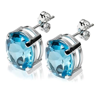 Eye-catching Swiss blue topaz stones do a solo act in these elegant stud earrings, crafted from 14 karat white gold. The large oval-shaped stones have a rich hue and faceted cut that lends them great depth and sparkle. They are held securely in four-prong settings and featured on posts with friction back closures. These earrings make a beautiful gift for someone with a December birthday, or for any woman who loves the vibrant color of Swiss blue topaz.