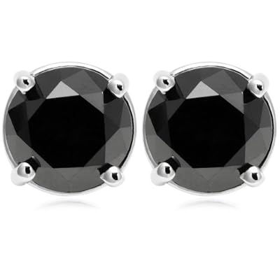 Black diamonds make a unique and fashionable statement in these classic stud earrings, fashioned from 14 karat white gold. The round, faceted diamonds have a total weight of one full carat. They are held securely in four-prong basket settings and featured on posts with friction back closures. A simple and classy choice with a little black dress, or an attractive complement to this season's bold black and white prints, these versatile earrings will quickly earn their place at the top of your jewelry box.