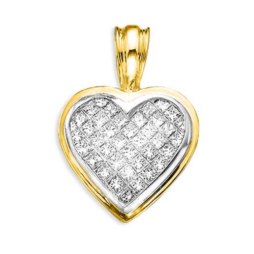 Love is all around and express your romantic side with this 1 ct. (Tw.) diamond heart pendant. These dazzling diamonds are inivisible set in a classic 14k yellow gold heart design. A fantastic gift for Valentine's Day or just to sweep her off her feet!