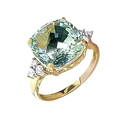 USGL Certified 8.50 Carat Green Amethyst & Diamond Ring Solid 14kt Gold-Yellow.