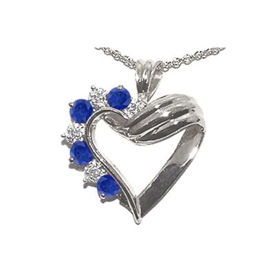 Sapphire Heart Shaped Pendant crafted in 14 kt White Gold Dimensions: Pendant is 21mm. long x 18mm.wide Stone Information: 4 Stones 0.65 Carats Round Sapphires 3mm., 4 Stones 0.04 Carats Round Diamonds Diamond Quality: I Color, SI Clarity Gemstone Quality: Medium to Dark Color, Eye Clean Clarity Made in USA Free 16 inches 14kt gold chain included. - FREE GIFT BAG! FREE GIFT CARD!. Our Style Number 22657