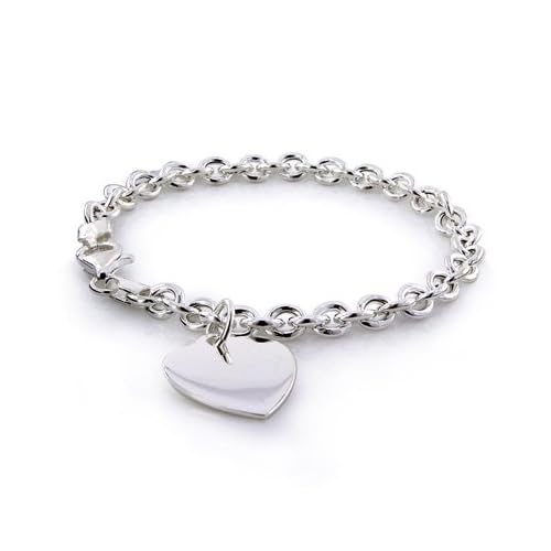 The perfect everyday piece of jewelry! Crafted in sterling silver and features a Rolo Link w/ Heart Charm design. This piece measures 7.5" L x 5.7mm W and weighs approximately 9.3 grams.