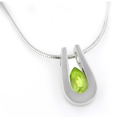 Peridot is August's birthstone and the hottest look in gems. This fashionable pendant features a gorgeous pear shaped peridot gemstone set in sterling silver and suspended from an 18" silver snake chain. Weight is 4.41 grams.